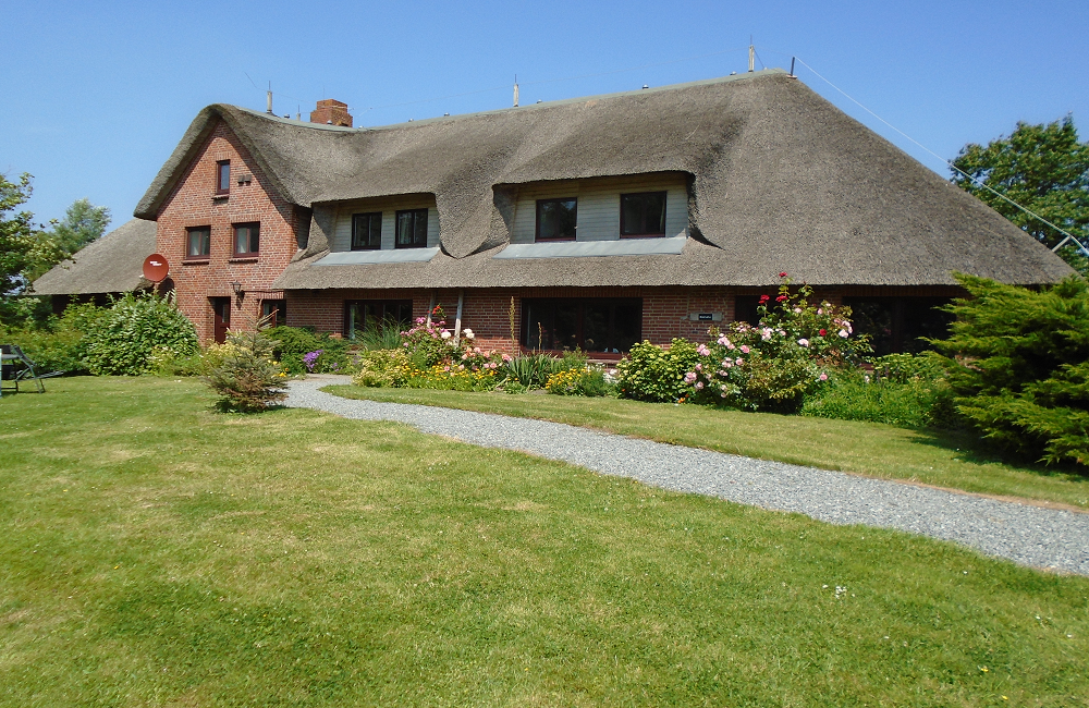 Im Nordwesten der Halbinsel Eiderstedt befindet sich der kleine Ort Westerhever mit seinem Wahrzeichen: dem Leuchtturm. Direkt am Seedeich der Nordsee, gegenüber von Pellworm, befindet sich die Lammerswarft mit unseren beiden Reetdachhäusern, die 1780/1791 erbaut wurden. Wir liegen absolut ruhig und fernab vom Autoverkehr. Die Ferienwohnungen werden laufend renoviert und mit Erdwärme beheizt. Auf der Warft finden Sie einen alten Baumbestand, einen Fething und einen windgeschützten Bauerngarten, der zum Erholen und Spielen einlädt.