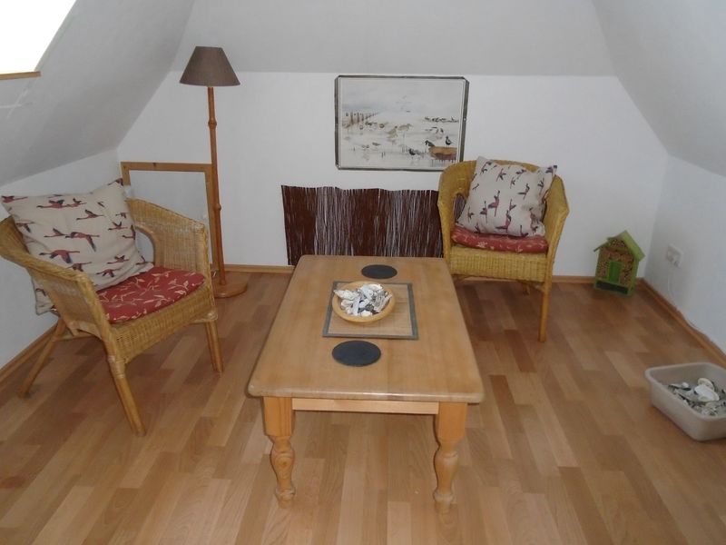 Der Halligkieker befindet sich im 1. Stock auf der rechten Seite der Lammerswarft unter dem Reetdach auf 2 Ebenen