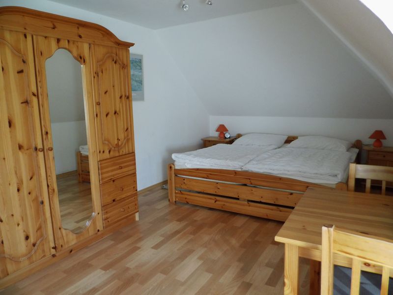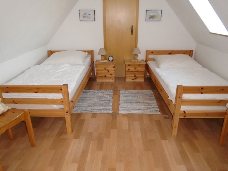 - 2 Schlafräume mit Doppelbett, 1 Schlafraum mit 2 Einzelbetten mit Blick in die Halligwelt, Kinderbett bis 3 Jahre vorhanden