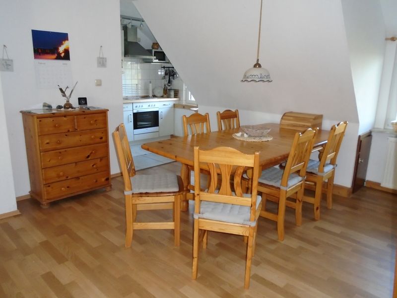 - Wohnzimmer, Essecke, Küche (komplett mit Geschirrspüler, Herd etc. zur Selbstversorgung ausgestattet) und Bad.